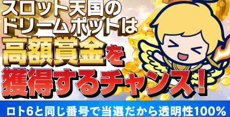 今だけ!スロット天国に登録するだけで、ロト抽選ジャックポットで使用できる、ドリームポットチケットが貰える!