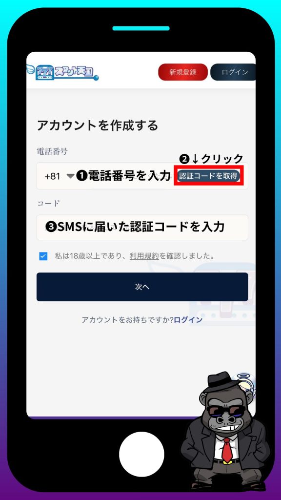 【STEP5】SMSに届いた認証コードを入力する